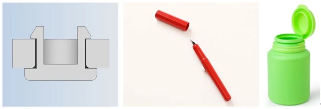 2、圆环式卡扣:常见于圆环型的产品,如笔筒盖,食品盒等。
