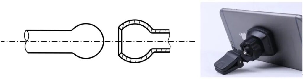 3、球型式卡扣:常见于一些类关节转动的结构,如儿童玩具、手机支架等。
