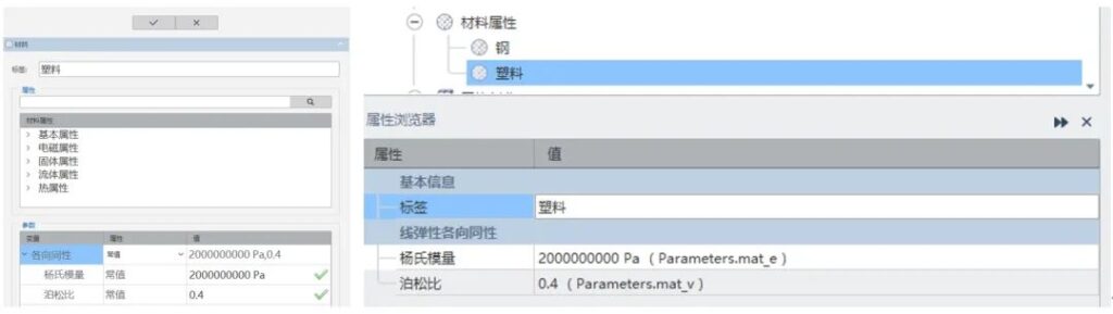 2)材料参数设定。为卡扣和槽定义力学属性。