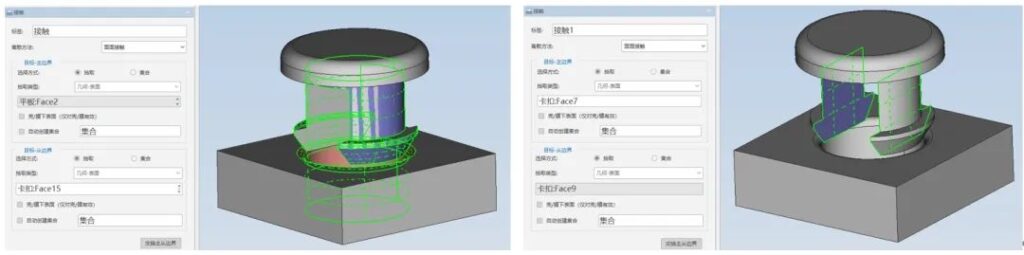 5)接触定义。定义卡扣头和卡扣槽接触面之间的接触,以及卡扣头自身因变形产生的自接触。