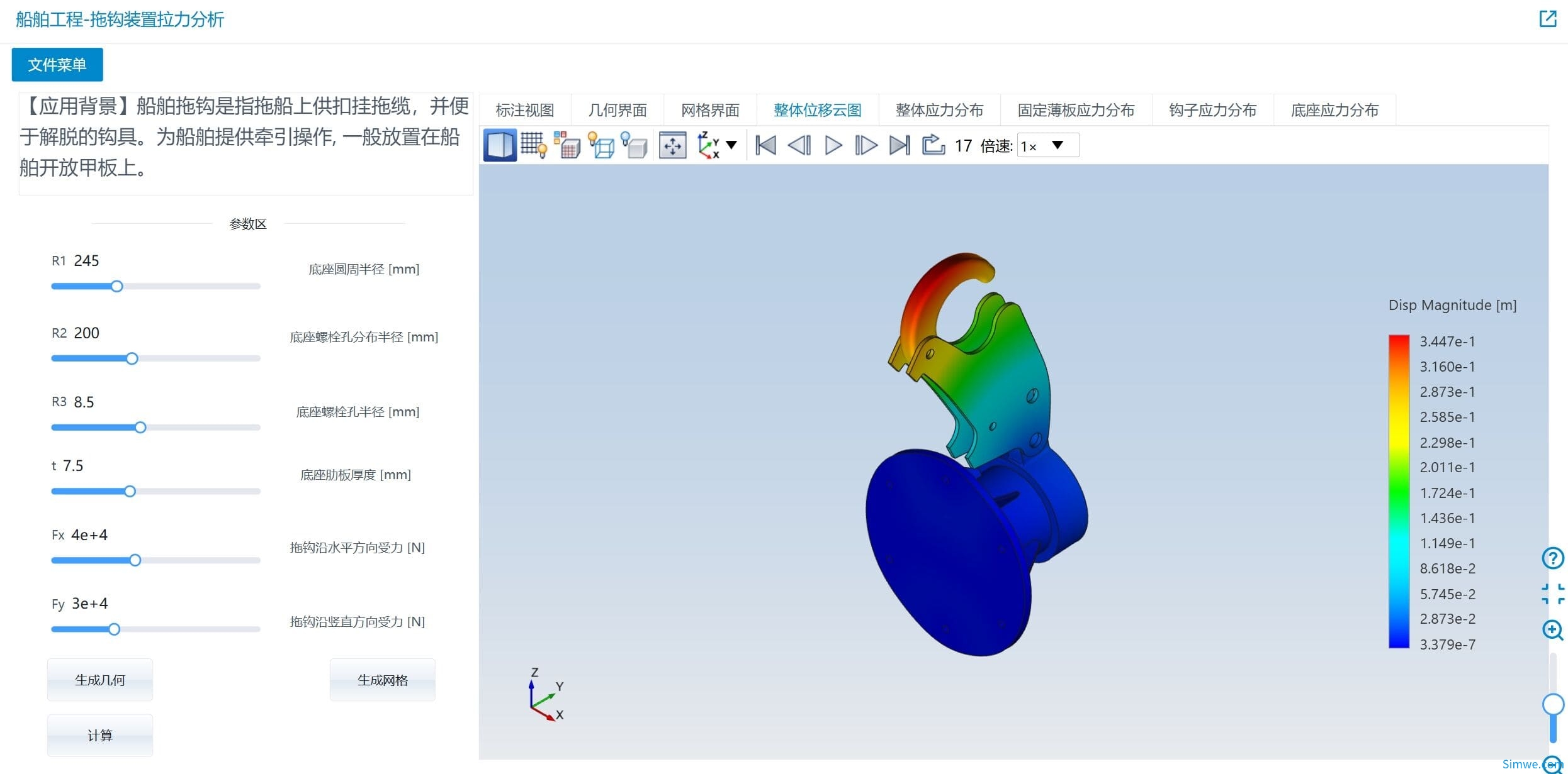 下面介绍一款船舶工程-拖钩装置拉力分析仿真APP: