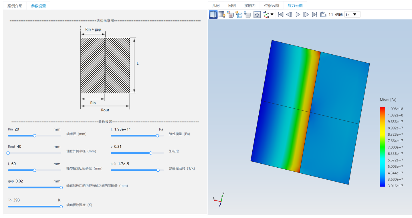 通过这一APP进行仿真分析,能够高效、准确地计算装配过程中的过盈应力,设计人员可以通过分析这些结果,进一步优化配合尺寸、调整轴与轴套的材料参数或结构设计,确保在实际装配过程中能够达到最佳的过盈配合效果。